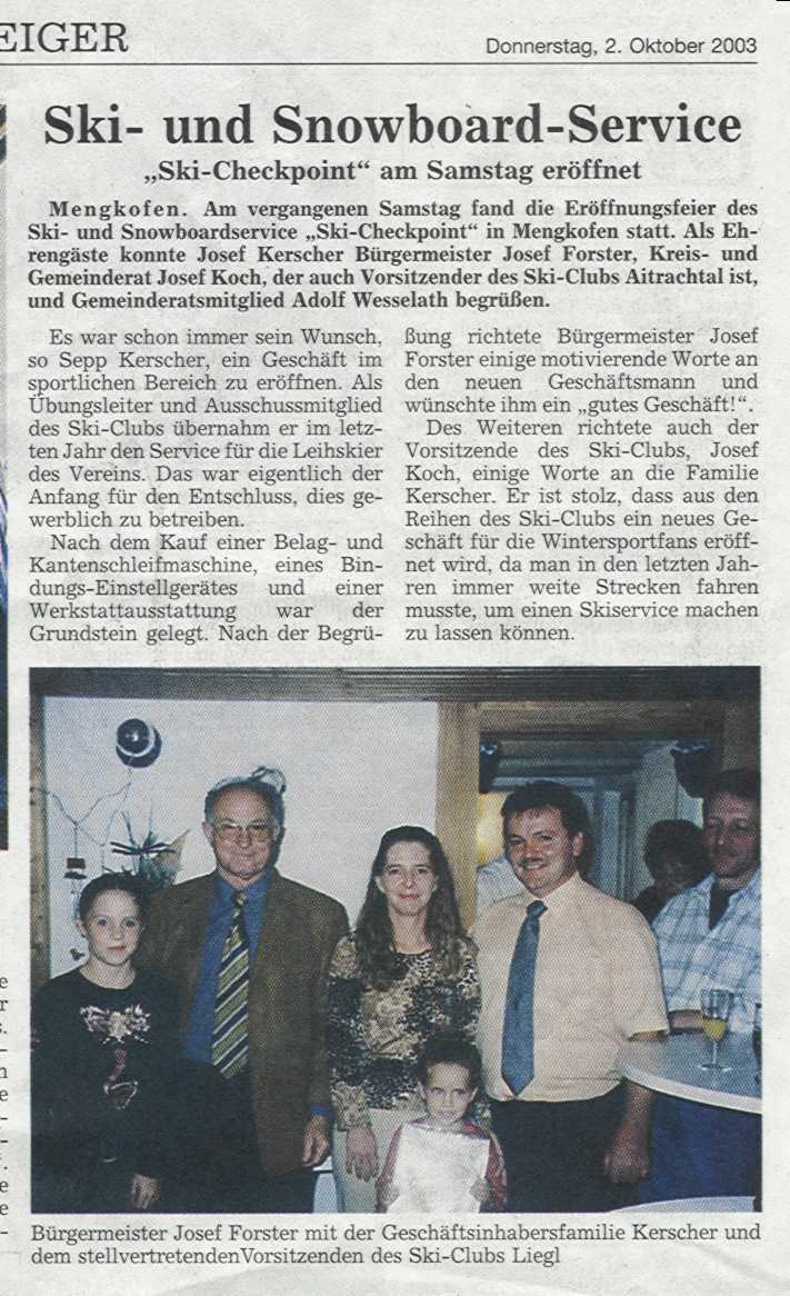 Geschäftseröffnung  Oktober '03 Zeitungsbericht im DGF_Anzeiger